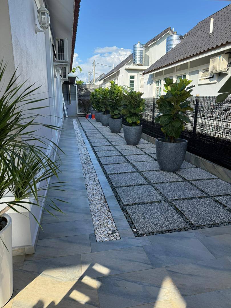 β’ Exterior: Full interlocking tiles & extended awnings (Car porch/side).